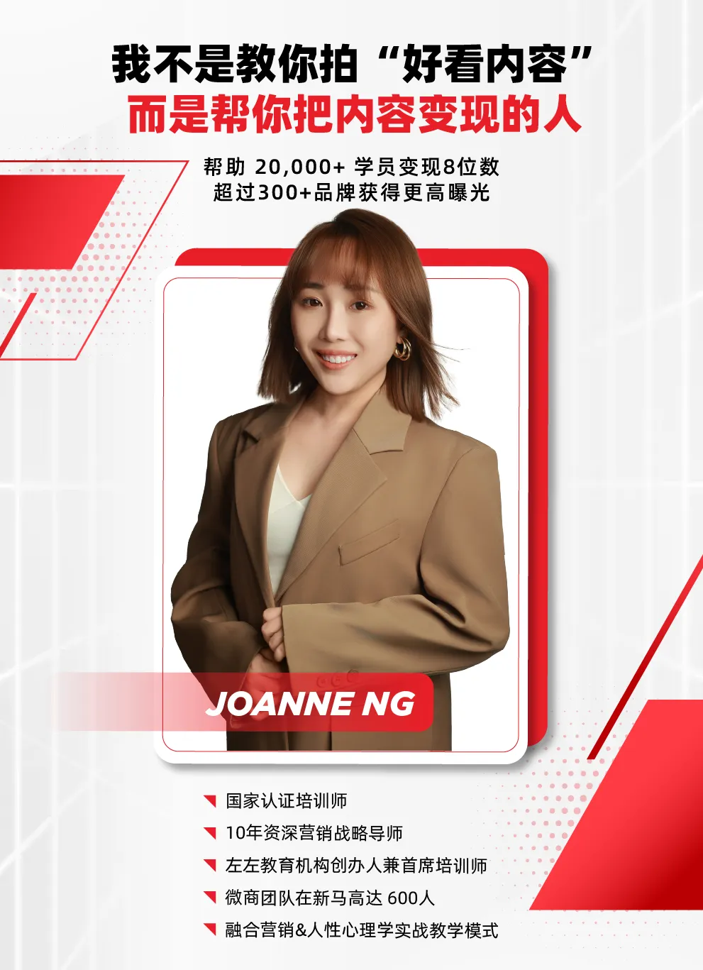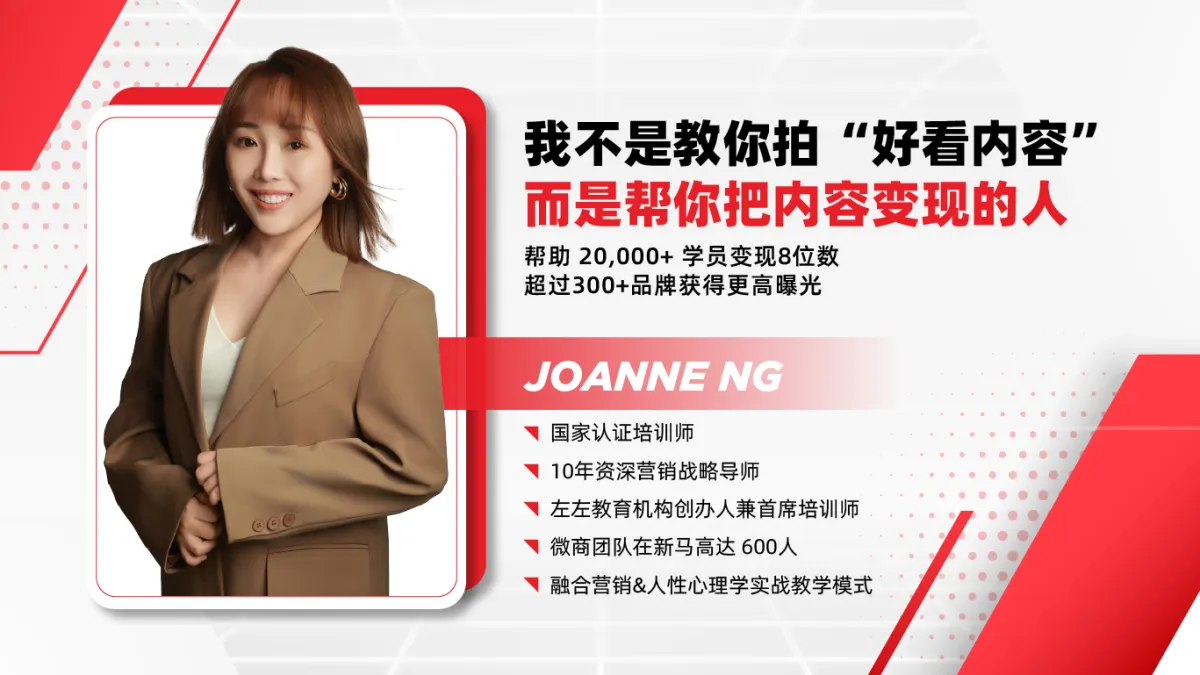 是的,我们两天《小红书终极获客系统》完全免费。平时 Joanne 老师授课出场费接近五位数,但为了让更多人真正学会变现方法,老师决定线上的课程一律免费!